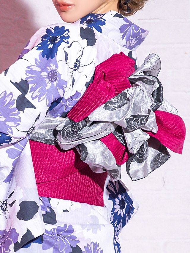 どんな浴衣にも合わせられてアクセントになるビーズが可愛い帯紐 ビーズ編み込み帯紐飾り(ホワイト×パープル/ブラック×シルバー)