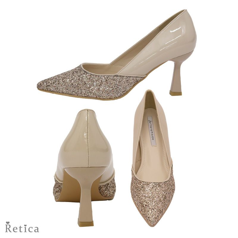 他の画像を見る 在庫切れ かかとのパールとビジューがポイント♪ パールビジュー付きレース切り替えパンプス (ベージュ/ブラック) [DorryDoll/ドリードール] ¥ 13,200 税込 カートに入れる