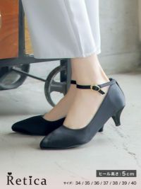 アンクルストラップ付きサテンローヒールパンプスのイメージ画像2