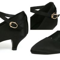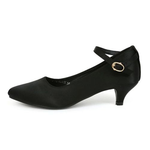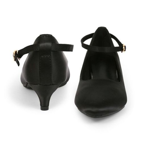 3. アンクルストラップ付きシンプルサテンローヒールパンプス (ブラック)