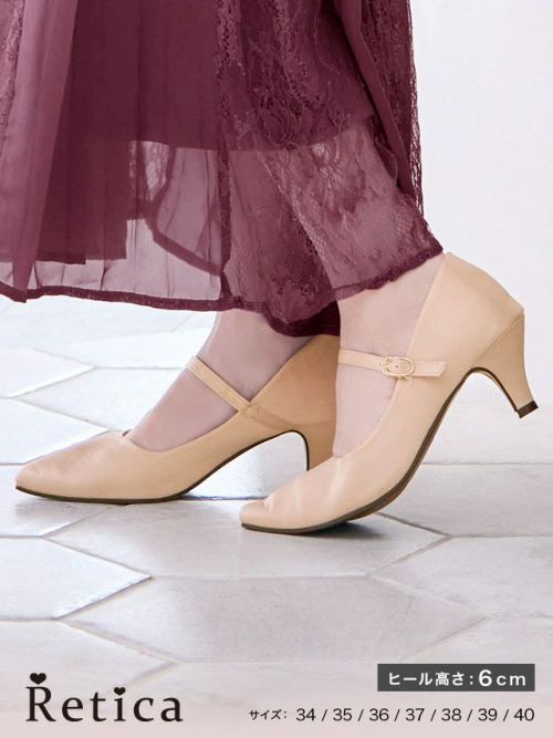 シンプルで万能なパンプス♪ サテン生地ローヒールフロントストラップパンプス (ベージュ)