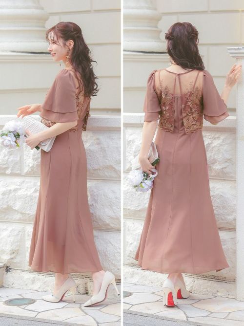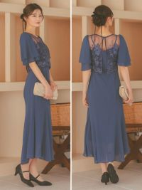 花柄刺繍シアーレース切り替えワンピースパーティードレスのイメージ画像3
