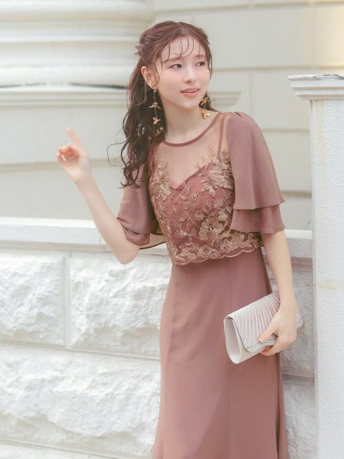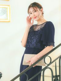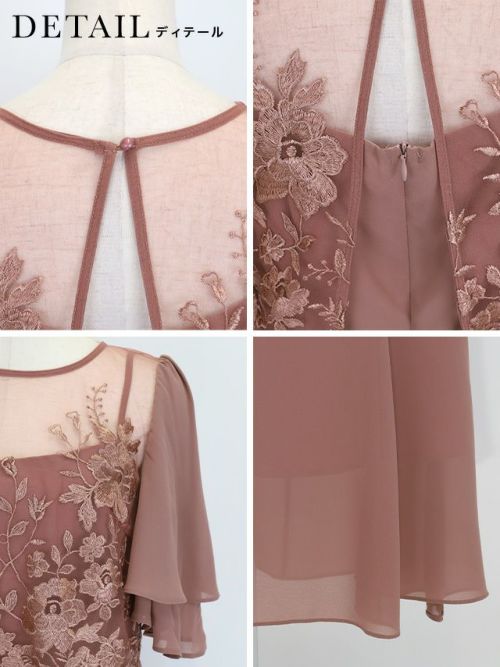 花柄刺繍シアーレース切り替えワンピースパーティードレスの商品詳細1
