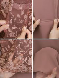 花柄刺繍シアーレース切り替えワンピースパーティードレスのサイドバッグ全身