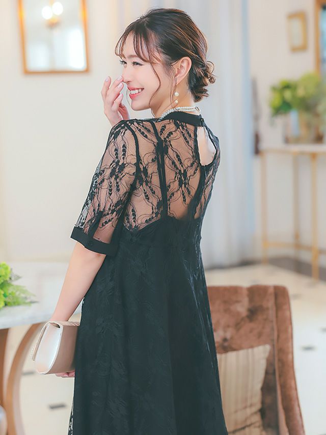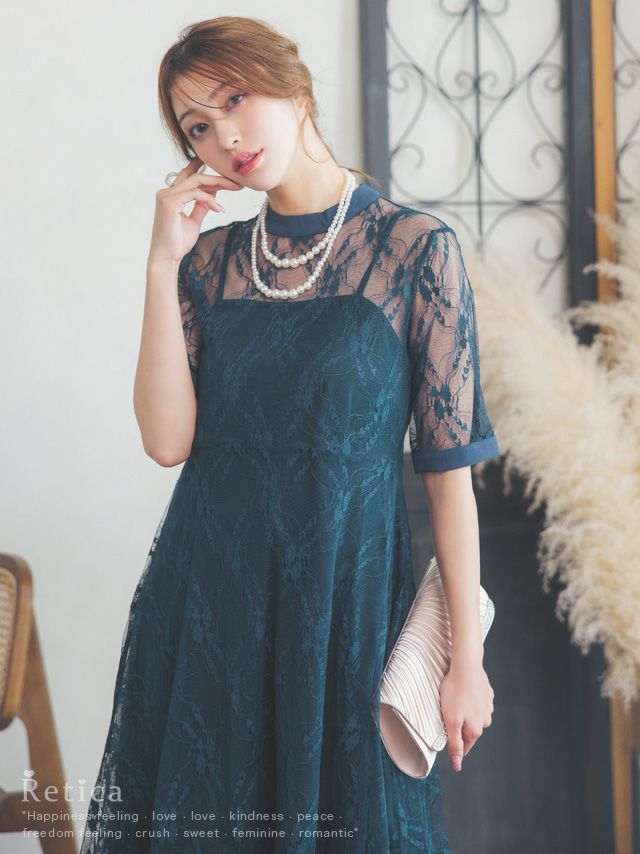 5. [SALE] レースワンピースパーティードレス [パールネックレス付き] (Sサイズ~3Lサイズ)