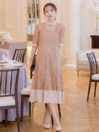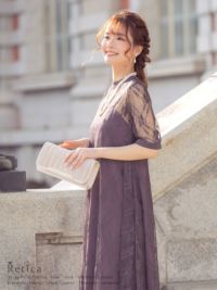 レース七分袖サテンワンピースミモレ丈パーティードレスのスペック表