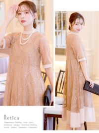 3. [SALE] レースワンピースパーティードレス [パールネックレス付き] (Sサイズ~3Lサイズ)