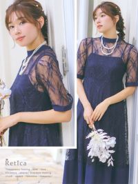 4. [SALE] レースワンピースパーティードレス [パールネックレス付き] (Sサイズ~3Lサイズ)