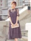 パールネックレス付きで小物合わせに迷わない◎ [SALE] レース切替半袖パールネックレス付きワンピースパーティードレス [パールネックレス付き] (Sサイズ~XXLサイズ)
