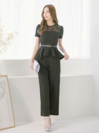 3. [SALE] 胸元レースベルト付きワイドパンツセパレートパーティードレス (Sサイズ~XXLサイズ)