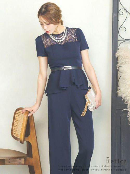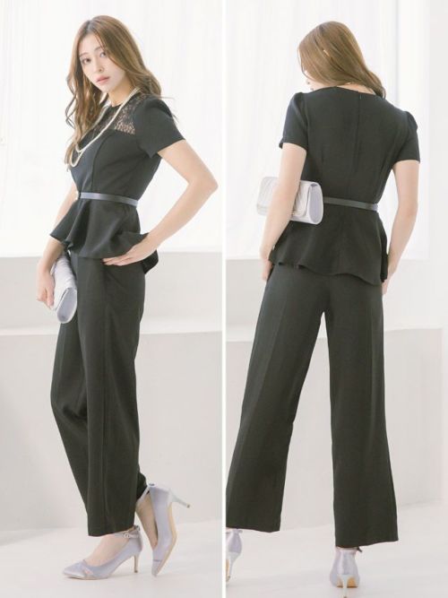 4. [SALE] 胸元レースベルト付きワイドパンツセパレートパーティードレス (Sサイズ~XXLサイズ)