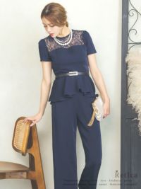 胸元レースベルト付きワイドパンツセパレートパーティードレスのイメージ画像1