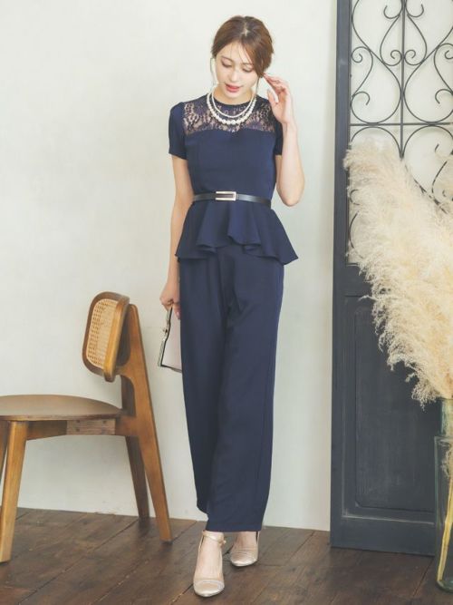 胸元レースベルト付きワイドパンツセパレートパーティードレスのカラーバリエーション