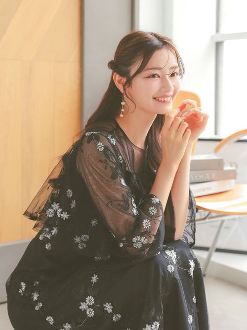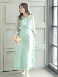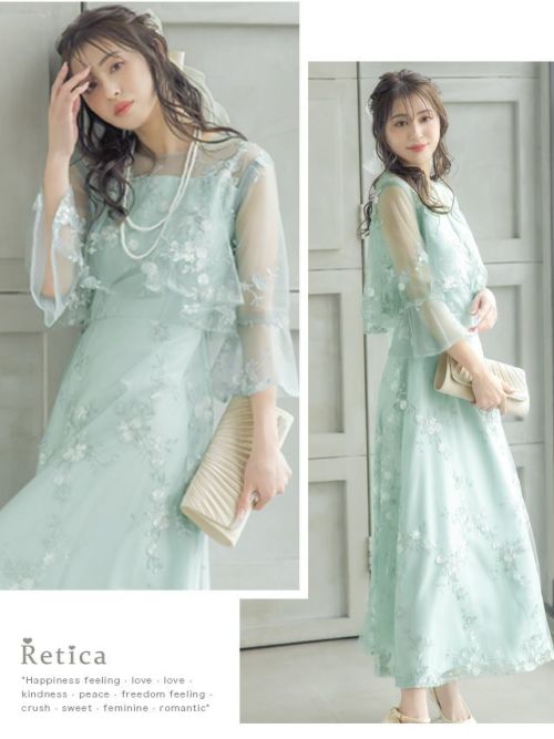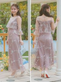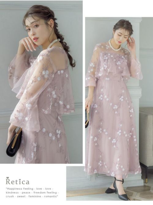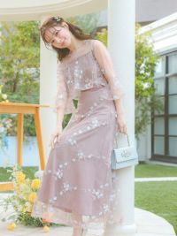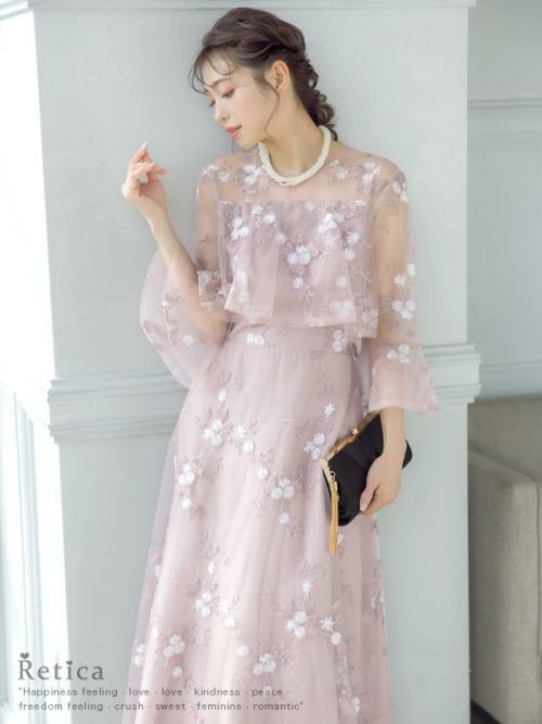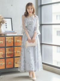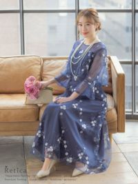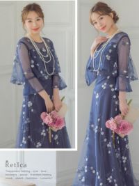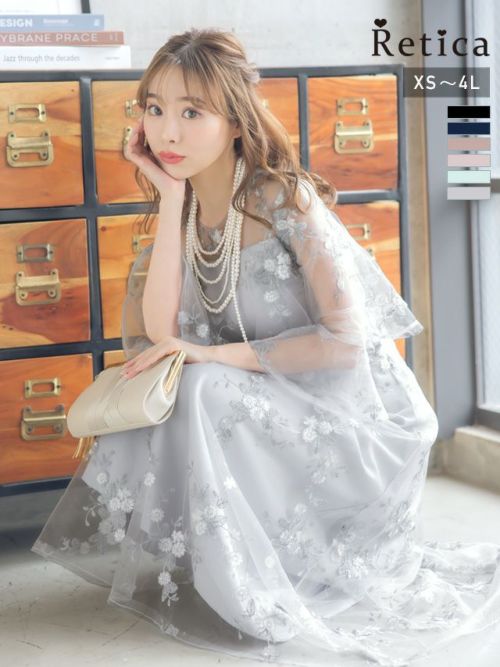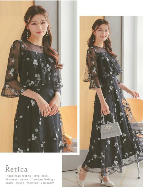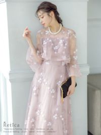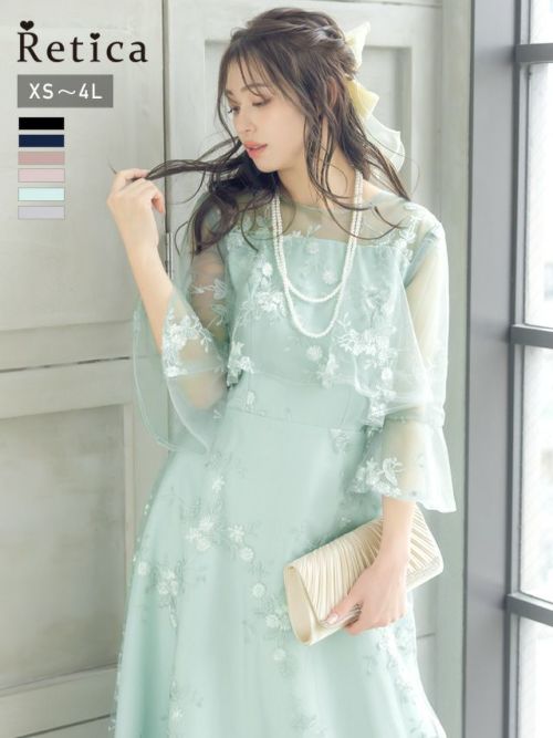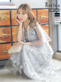 9/25再入荷★ふわっと大人ガーリーな一着♪ 花刺繍チュールデザインロング丈パーティードレス (XSサイズ~4Lサイズ)<高身長サイズあり>