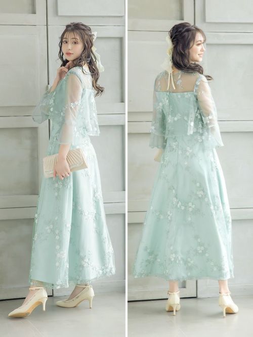 花刺繍チュールデザインロング丈パーティードレスのカラーバリエーション