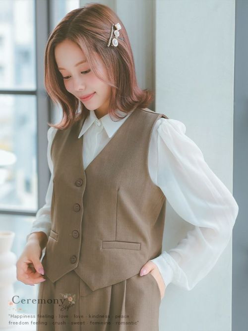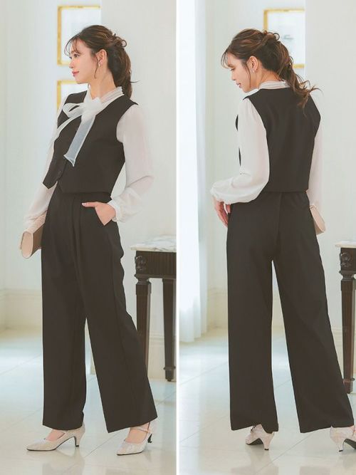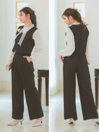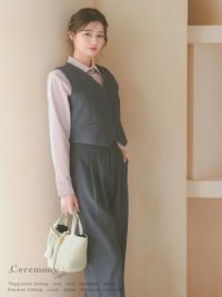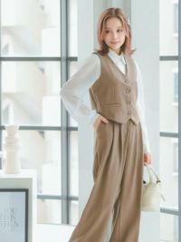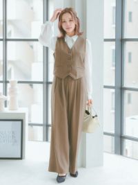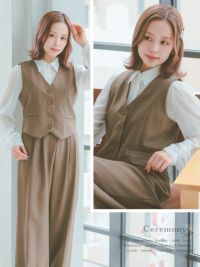 ショート丈ベスト&ワイドパンツ セットアップスーツの商品詳細1