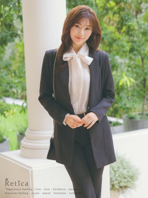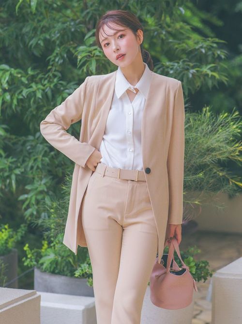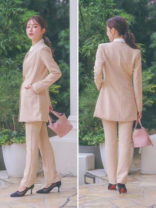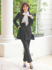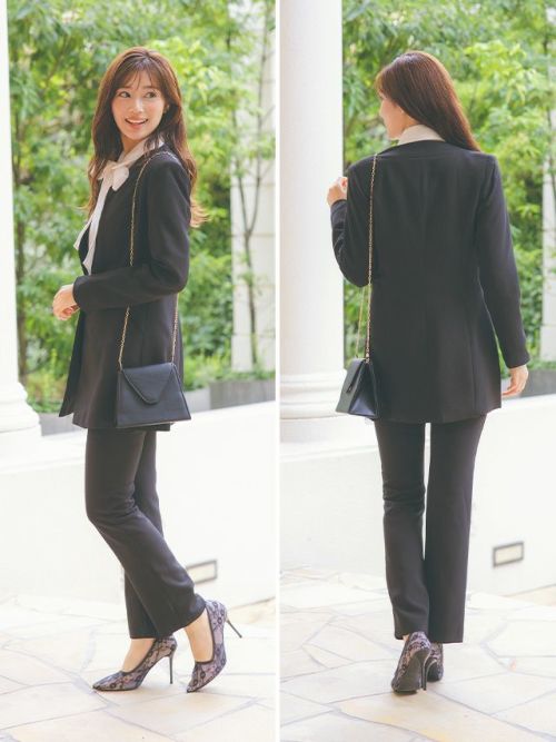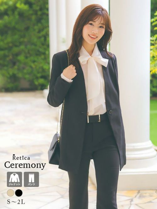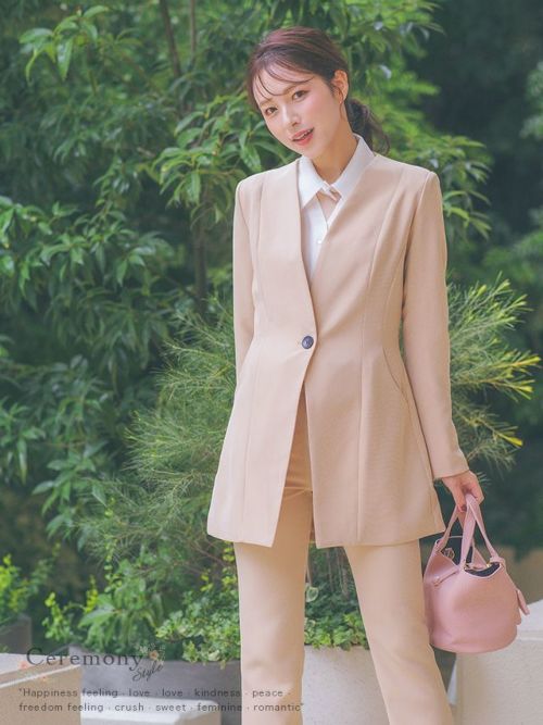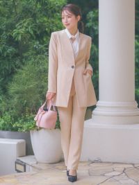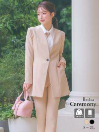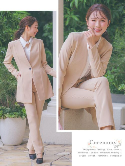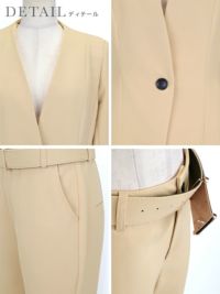 Vカラーペプラムジャケット×テーパードパンツセットアップセレモニースーツのスペック表