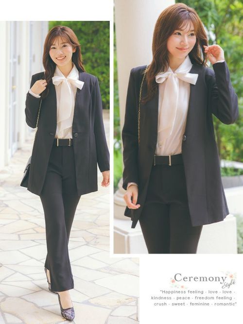 Vカラーペプラムジャケット×テーパードパンツセットアップセレモニースーツのカラーバリエーション
