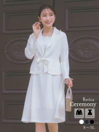 リボンブローチで可愛さプラス [SALE] リボン付きジャケットセットタックワンピースセレモニースーツ (S~XXLサイズ)