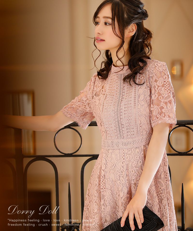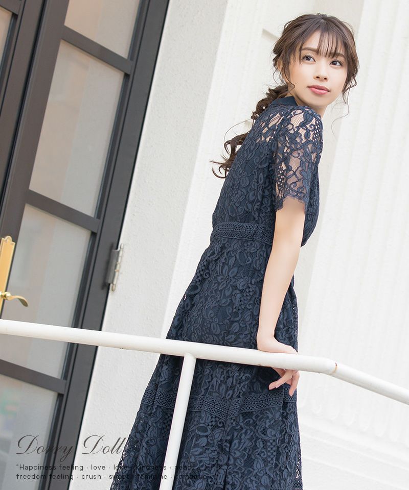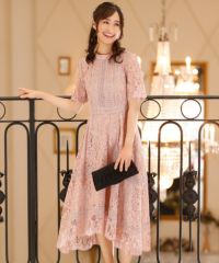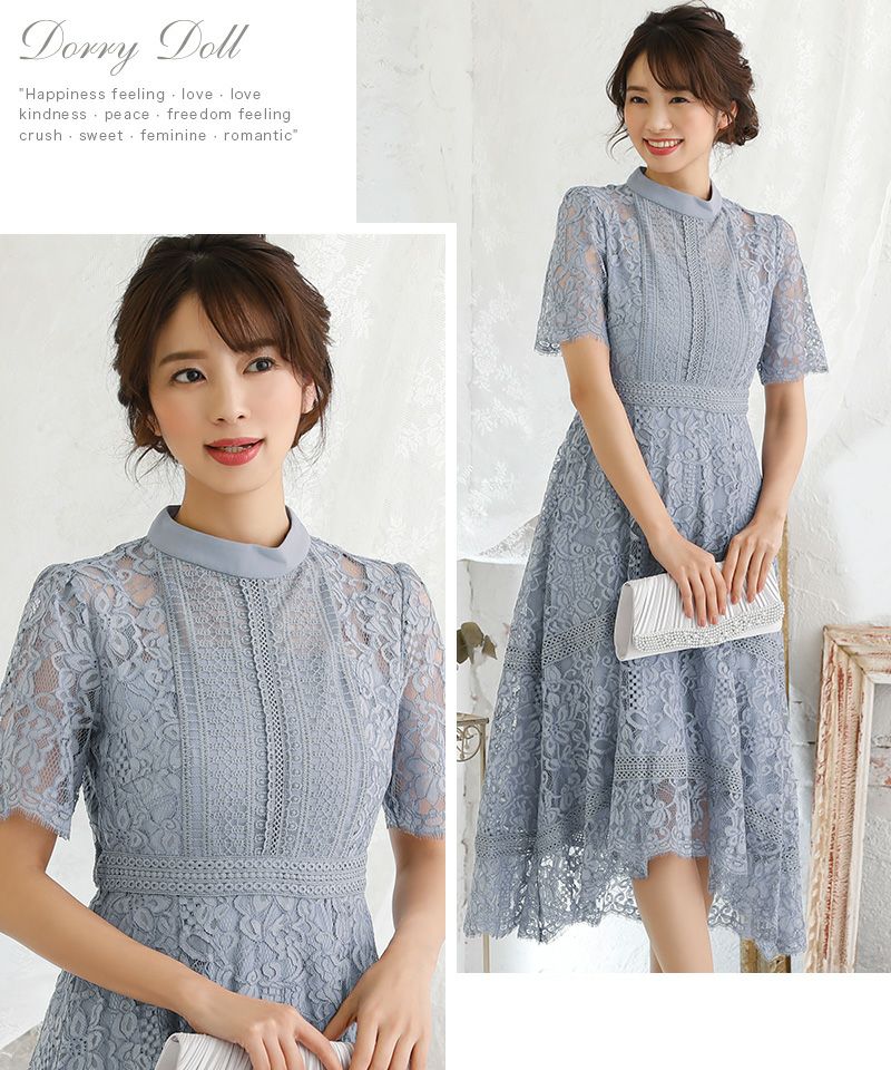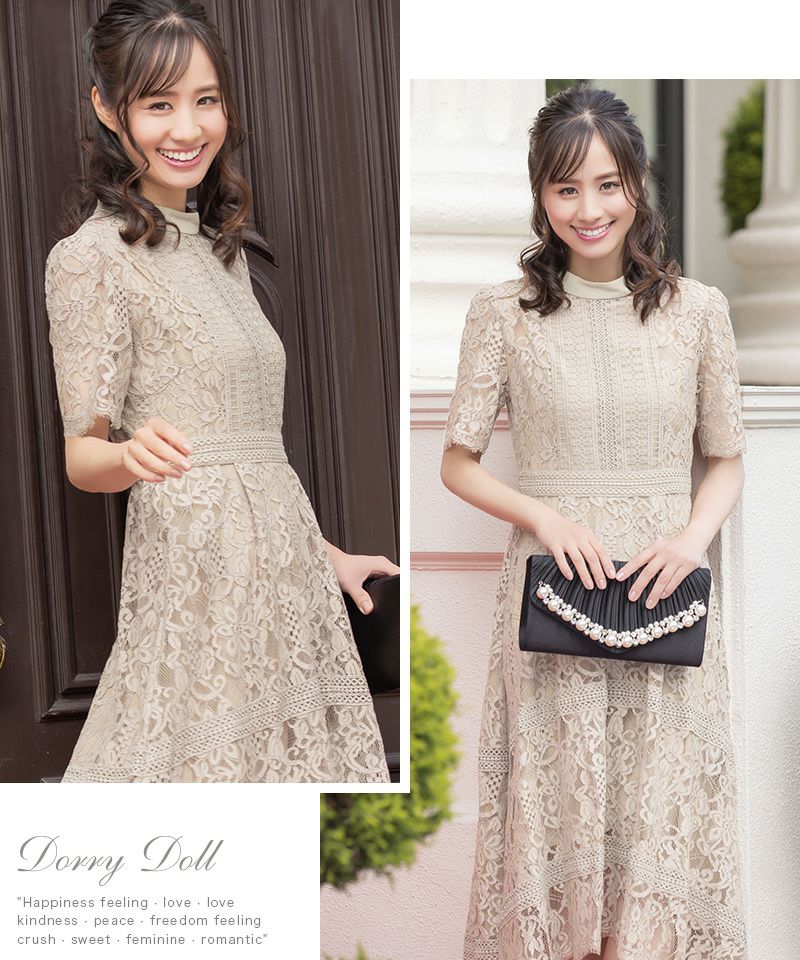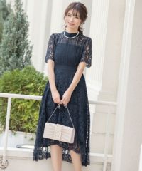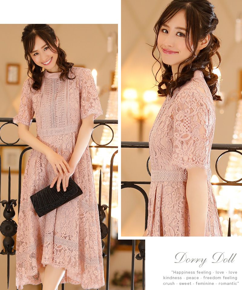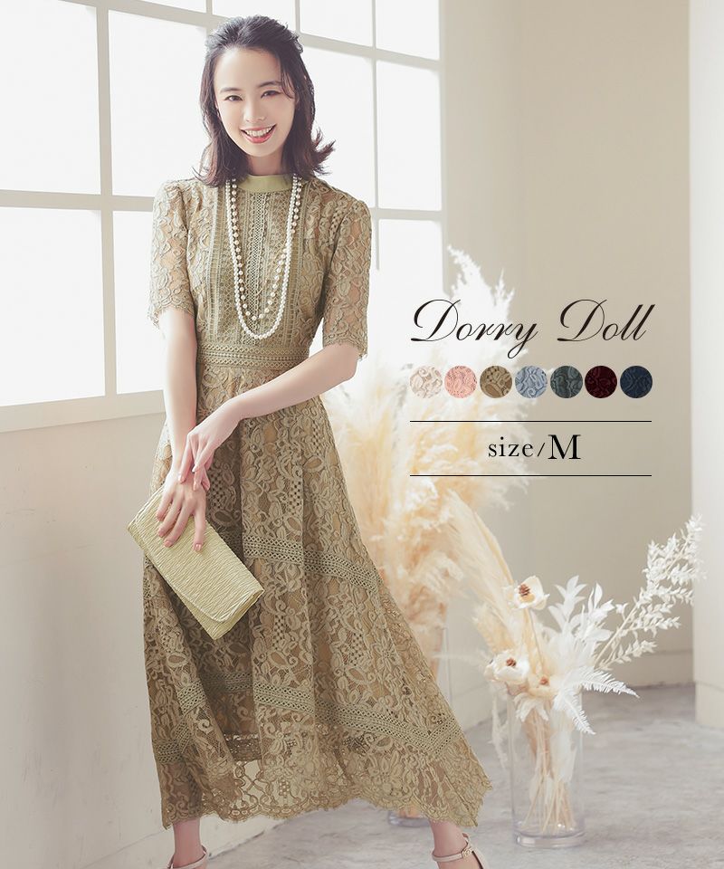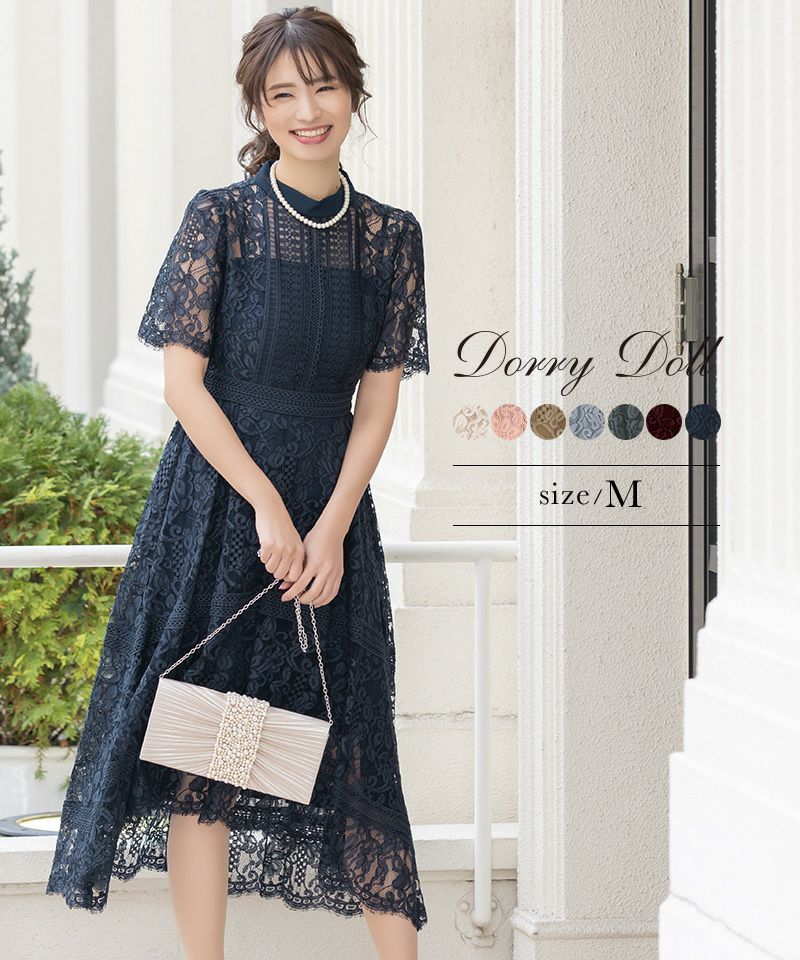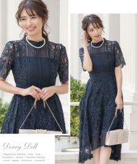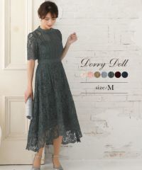 パーティードレス Dorry Doll ドリードール 総レース&はしご切替イレヘムミモレ丈ドレス
