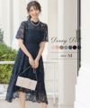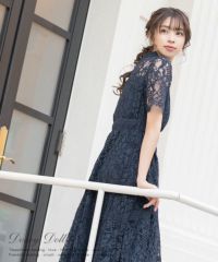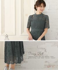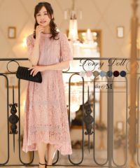 甘すぎずエレガント&キュートに♪ 総レース&はしご切替イレヘムミモレ丈パーティードレス (Mサイズ) [DorryDoll/ドリードール]