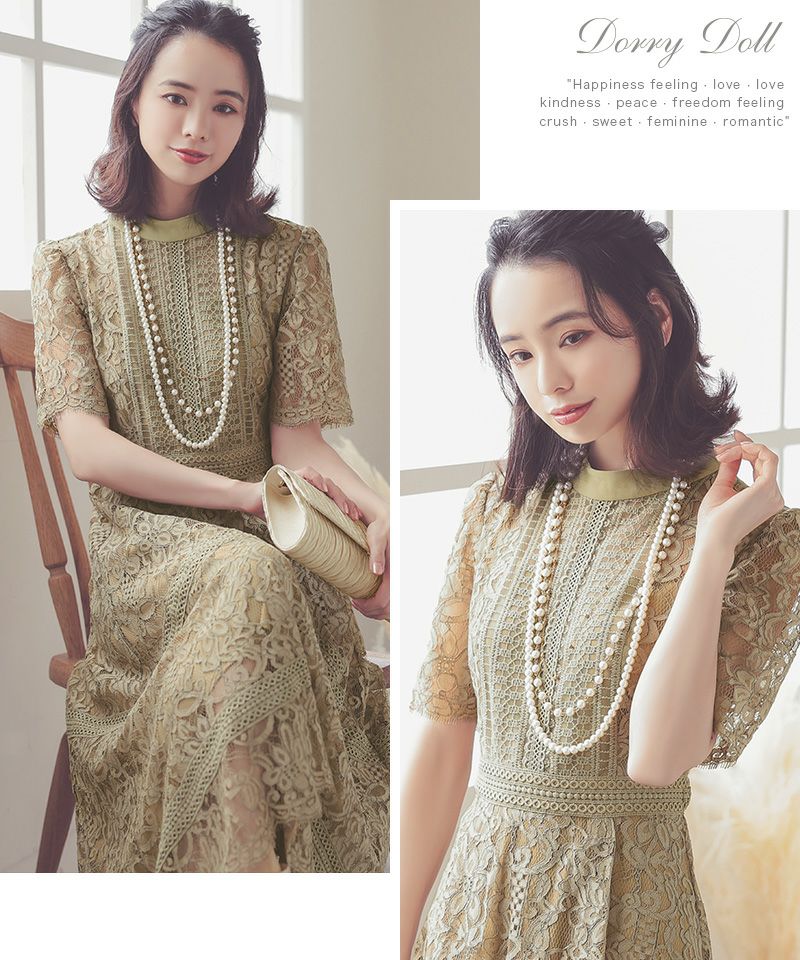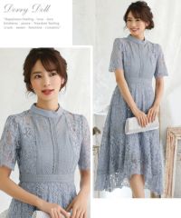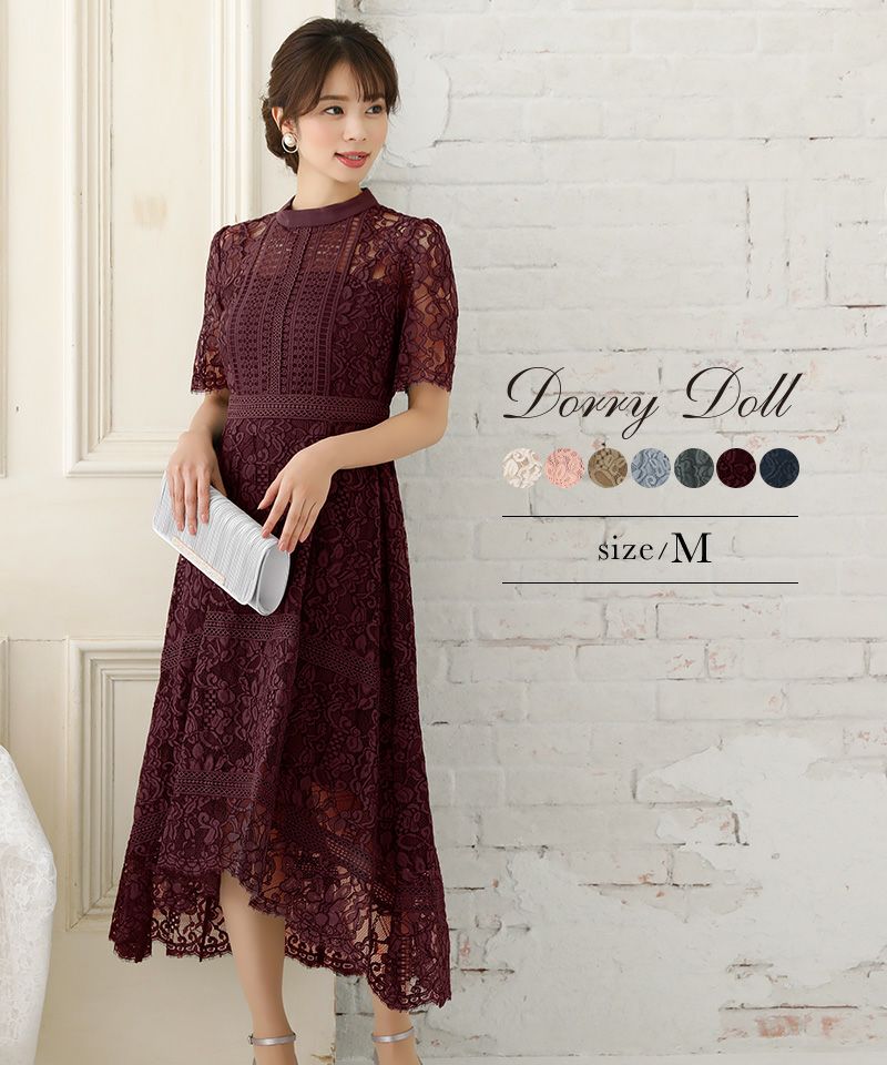 5. 総レース&はしご切替イレヘムミモレ丈パーティードレス (Mサイズ) [DorryDoll/ドリードール]