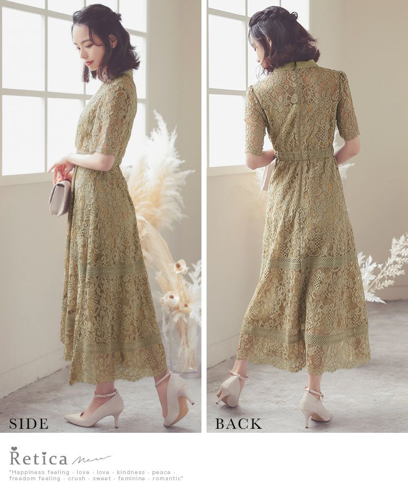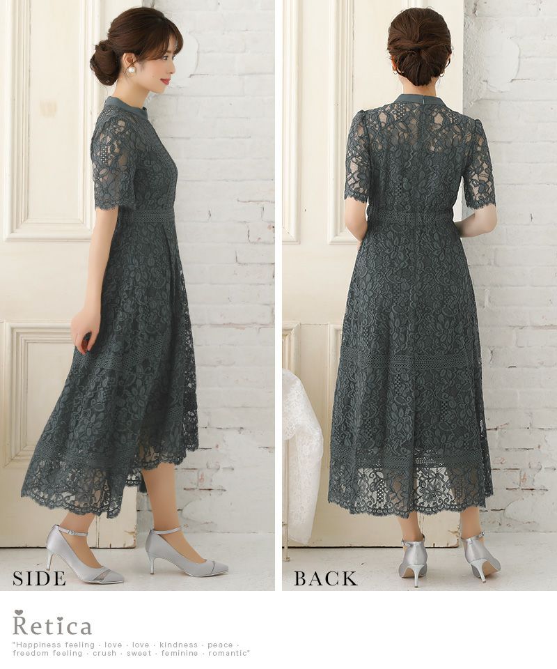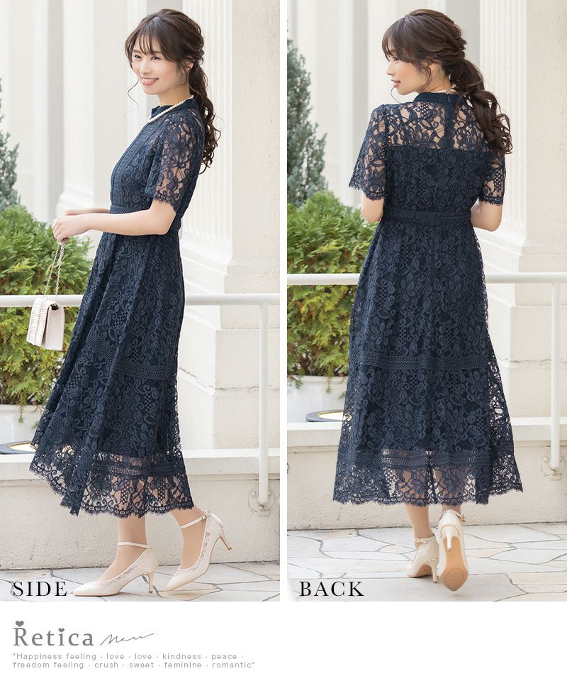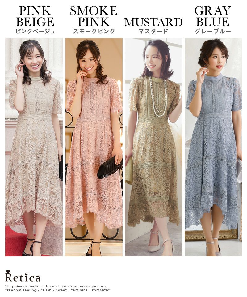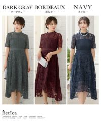 総レース&はしご切替イレヘムミモレ丈パーティードレスのカラーバリエーション