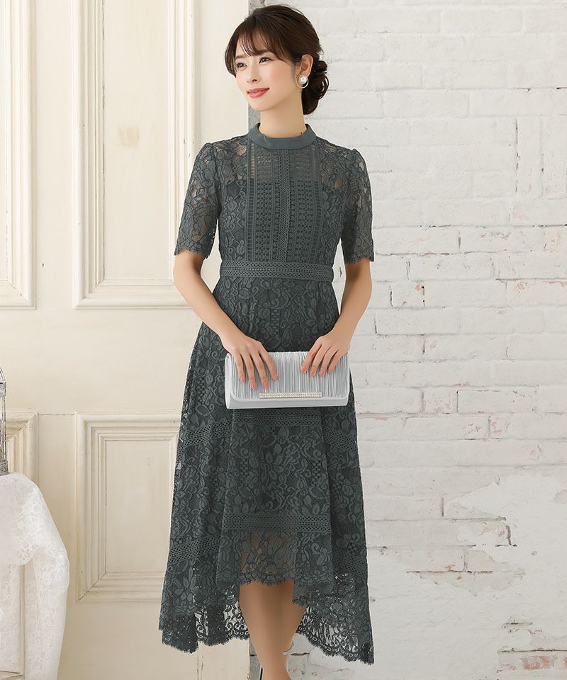 総レース&はしご切替イレヘムミモレ丈パーティードレスの商品詳細1
