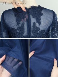 立体刺繍重ねチュール五分袖ミモレ丈ワンピースパーティードレスのイメージ画像3