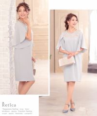 4. フレアケープ風スリーブデコルテレース切替フレアミニパーティードレス (Sサイズ~XXLサイズ)