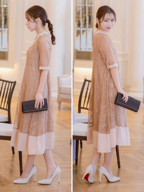 半袖レースレイヤード膝丈ワンピースパーティードレスのカラーバリエーション