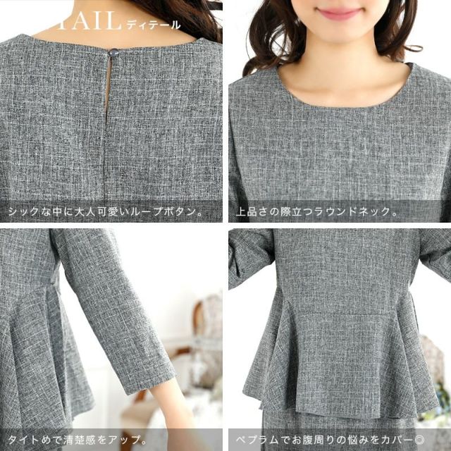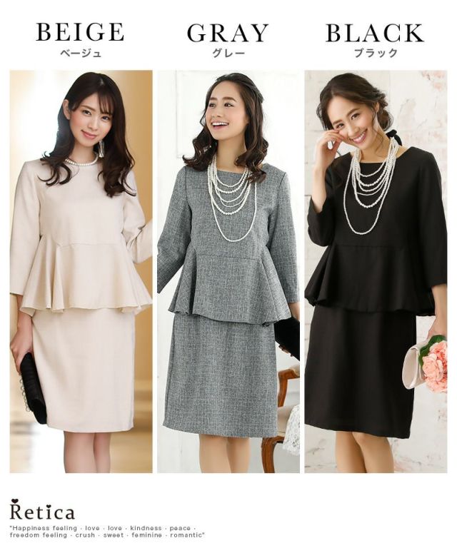 女性らしいペプラムデザインで大人可愛いセットドレスです。