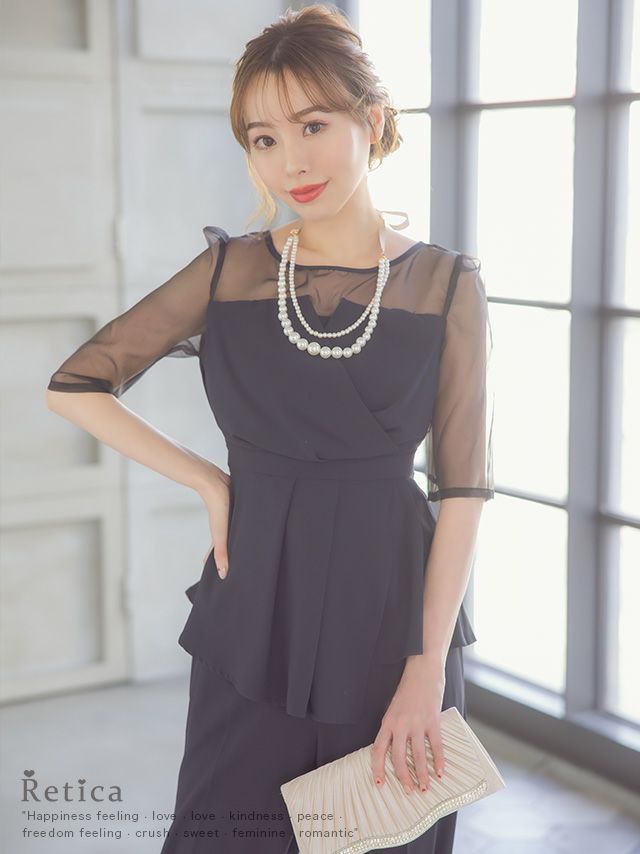 結婚式・謝恩会・パーティー・ディナーなどのお呼ばれシーンにおすすめの「袖ありパンツドレス」。