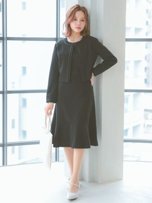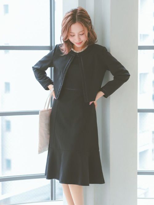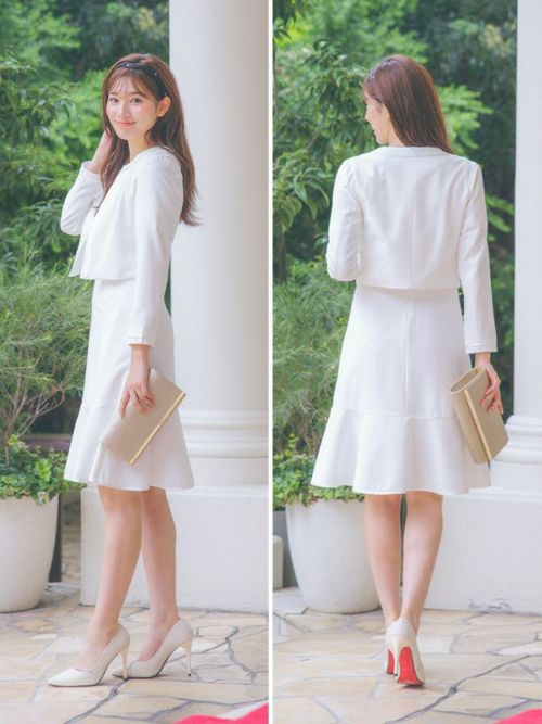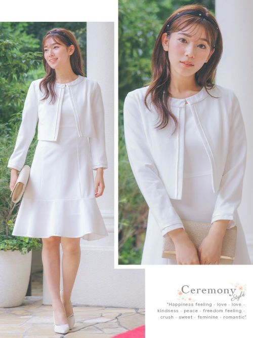 パネルラインで美シルエットに [SALE] ワンカラーミニ丈ジャケットセットパネルラインワンピースセレモニースーツ (S~XXLサイズ) (ホワイト/ネイビー/ブラック)