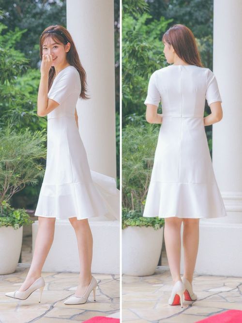 4. [SALE] ワンカラーミニ丈ジャケットセットパネルラインワンピースセレモニースーツ (S~XXLサイズ) (ホワイト/ネイビー/ブラック)