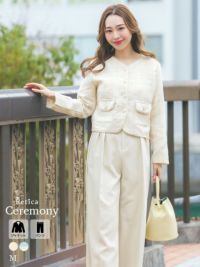 3. [SALE] ツイード調パールボタン付き2ピースセットアップセレモニースーツ(Mサイズ)