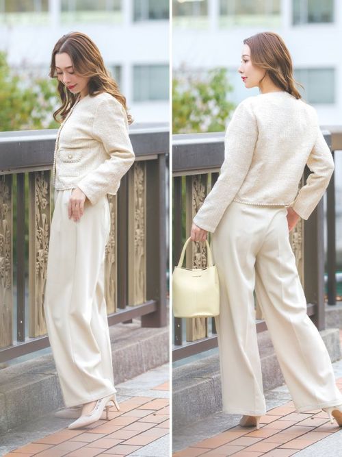 ジャケットのパールボタンが上品且つ華やかな印象を与えてくれます♪