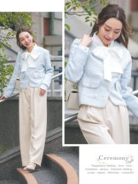 ツイード調パールボタン付き2ピースセットアップセレモニースーツのイメージ画像2