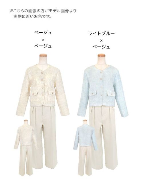 ツイード調デザインが可愛い2ピースセットアップセレモニースーツ。