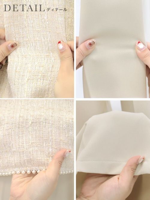ツイード調パールボタン付き2ピースセットアップセレモニースーツの商品詳細2