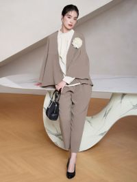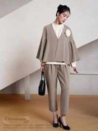 3. [SALE] ファーマルフレアスリーブジャケットセットアップセレモニースーツ(Sサイズ~3Lサイズ) (ダークベージュ/ネイビー/ブラック)
