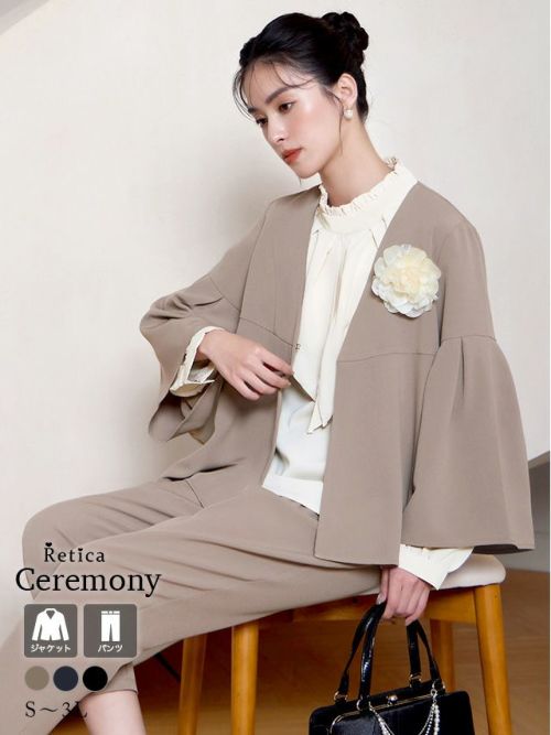 フレアスリーブジャケットテーパードパンツセットアップセレモニースーツのカラーバリエーション