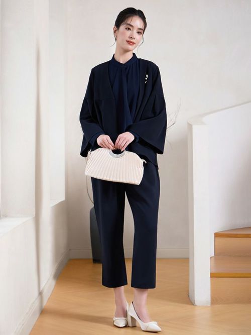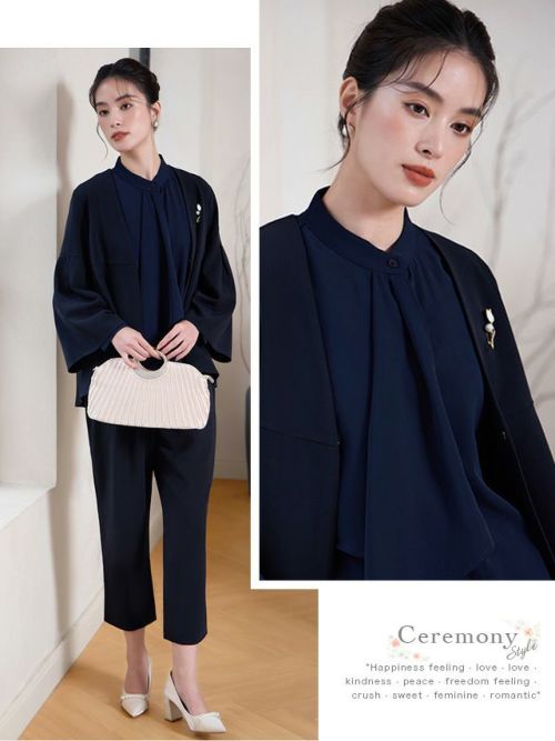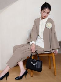4. [SALE] フレアスリーブテーパードパンツセットアップセレモニースーツ(Sサイズ~3Lサイズ) (ダークベージュ/ネイビー/ブラック)