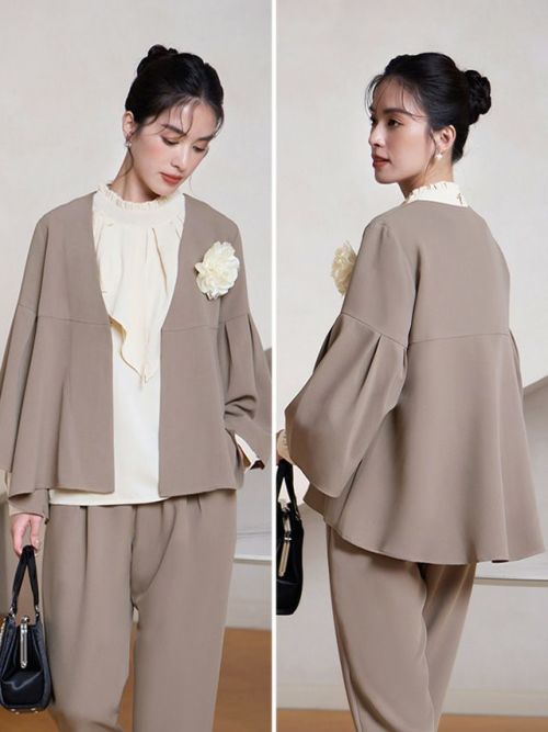 3. [SALE] フレアスリーブテーパードパンツセットアップセレモニースーツ(Sサイズ~3Lサイズ) (ダークベージュ/ネイビー/ブラック)
