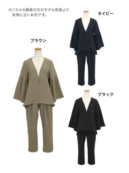 ゆるっと上品シルエット♪ [SALE] フレアスリーブテーパードパンツセットアップセレモニースーツ(Sサイズ~3Lサイズ) (ダークベージュ/ネイビー/ブラック)