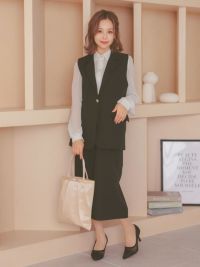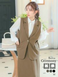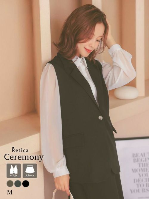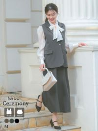 スタイルカバーが叶う綺麗めセットアップスーツ♪ [SALE] ベスト+フレア膝丈スカートワンカラーセットアップセレモニースーツ (Mサイズ)