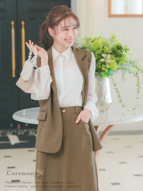 ベスト+フレア膝丈スカートワンカラーセットアップセレモニースーツのジャケットありイメージ画像