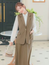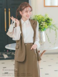 ベスト+フレア膝丈スカートワンカラーセットアップセレモニースーツのメイン画像