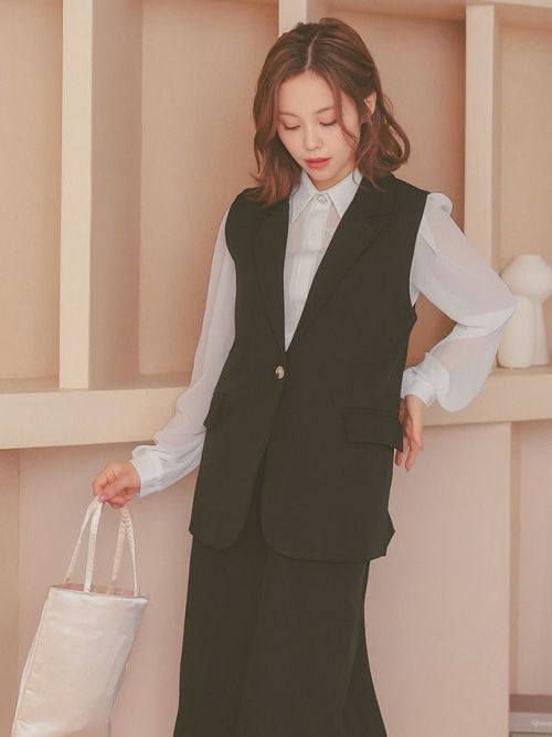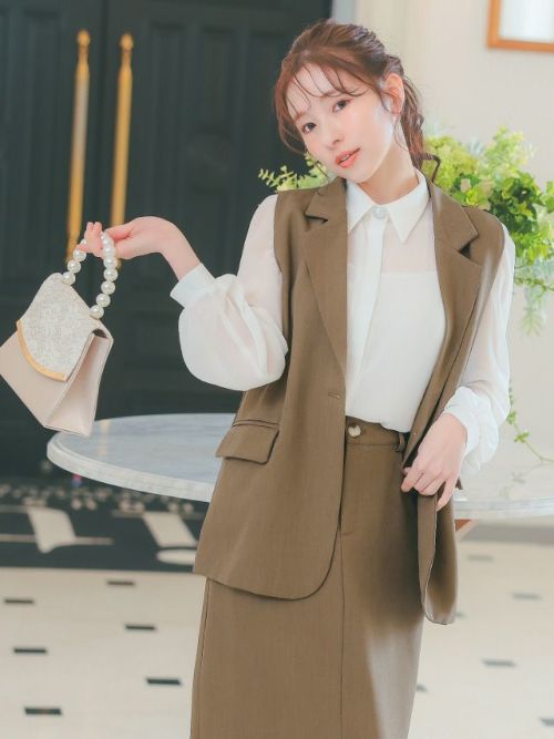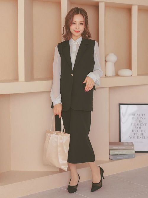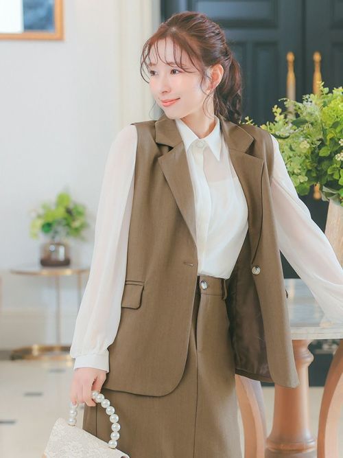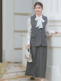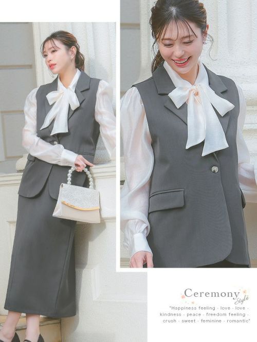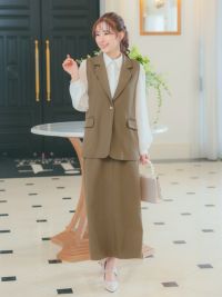 ベスト+フレア膝丈スカートワンカラーセットアップセレモニースーツのイメージ画像1