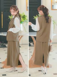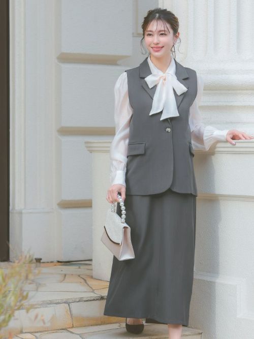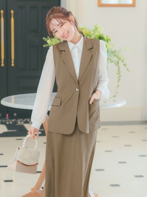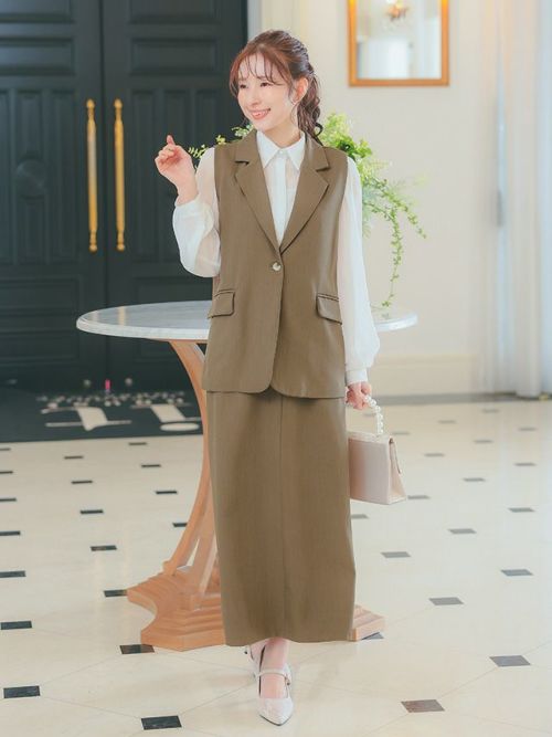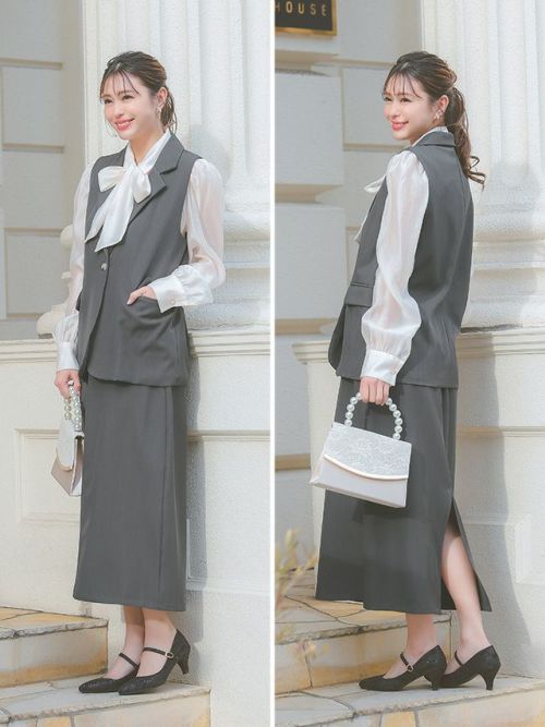 ベスト+フレア膝丈スカートワンカラーセットアップセレモニースーツサイドバック全身